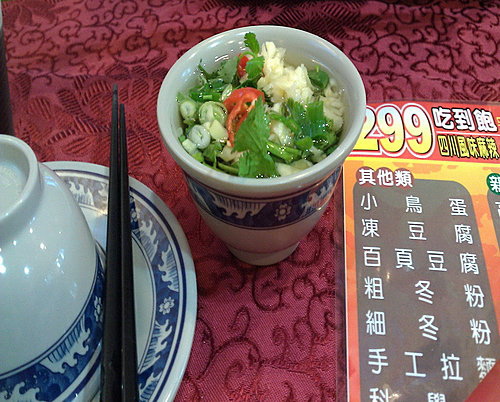 小不點的醬料,吃麻辣鍋我總愛加一大堆蔥、蒜頭及白醋,來滿足