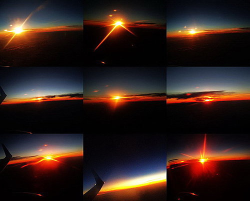 在回國的當天,看到唯美的夕光換成了月光,在五小時的飛程中,這沿路