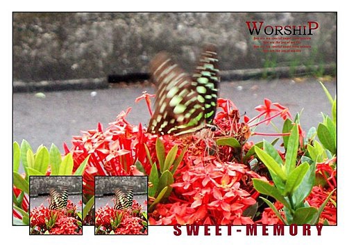 P.S:今年還沒拍到美麗的蝴蝶,所以把去年拍到的蝴蝶再和大家分享一回,希望大家都幸福開心喔